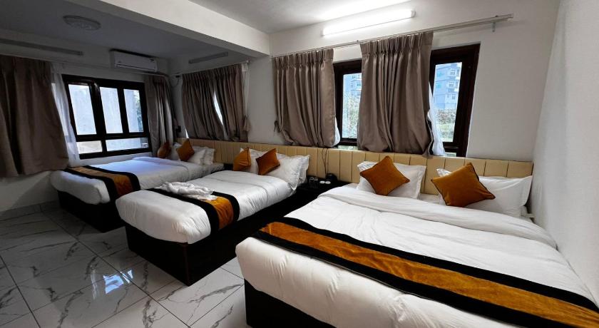 Triple and family rooms are available — pick those for adding kids. Extra-bed surcharges in Kathmandu typically run NPR 1,000–1,800 per night; the exact rate and capacity is shown at checkout.