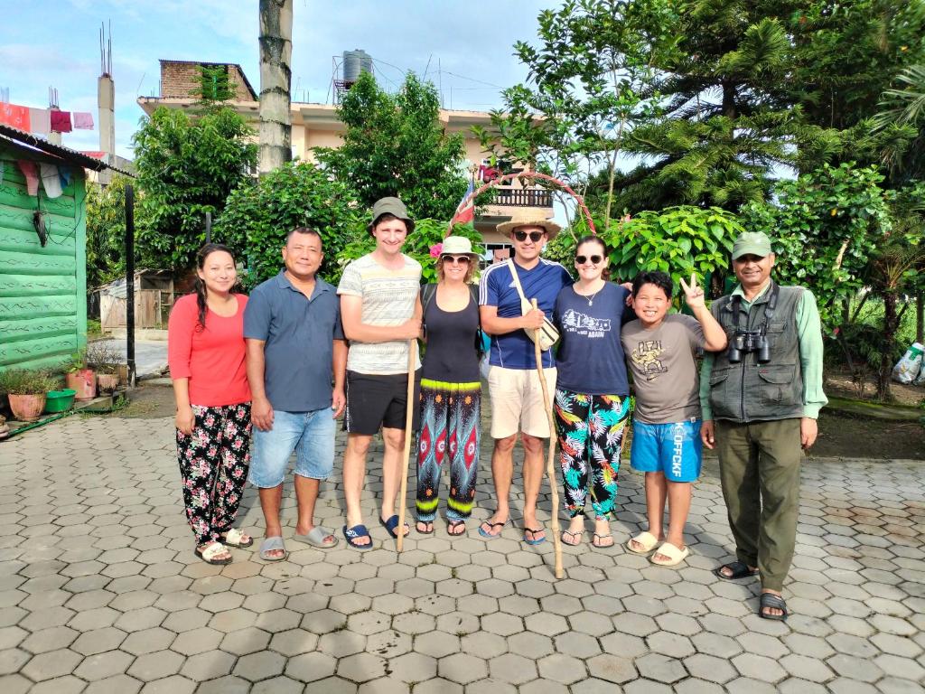 Triple and family rooms are available — pick those for adding kids. Extra-bed surcharges in Sauraha typically run NPR 1,000–1,800 per night; the exact rate and capacity is shown at checkout.